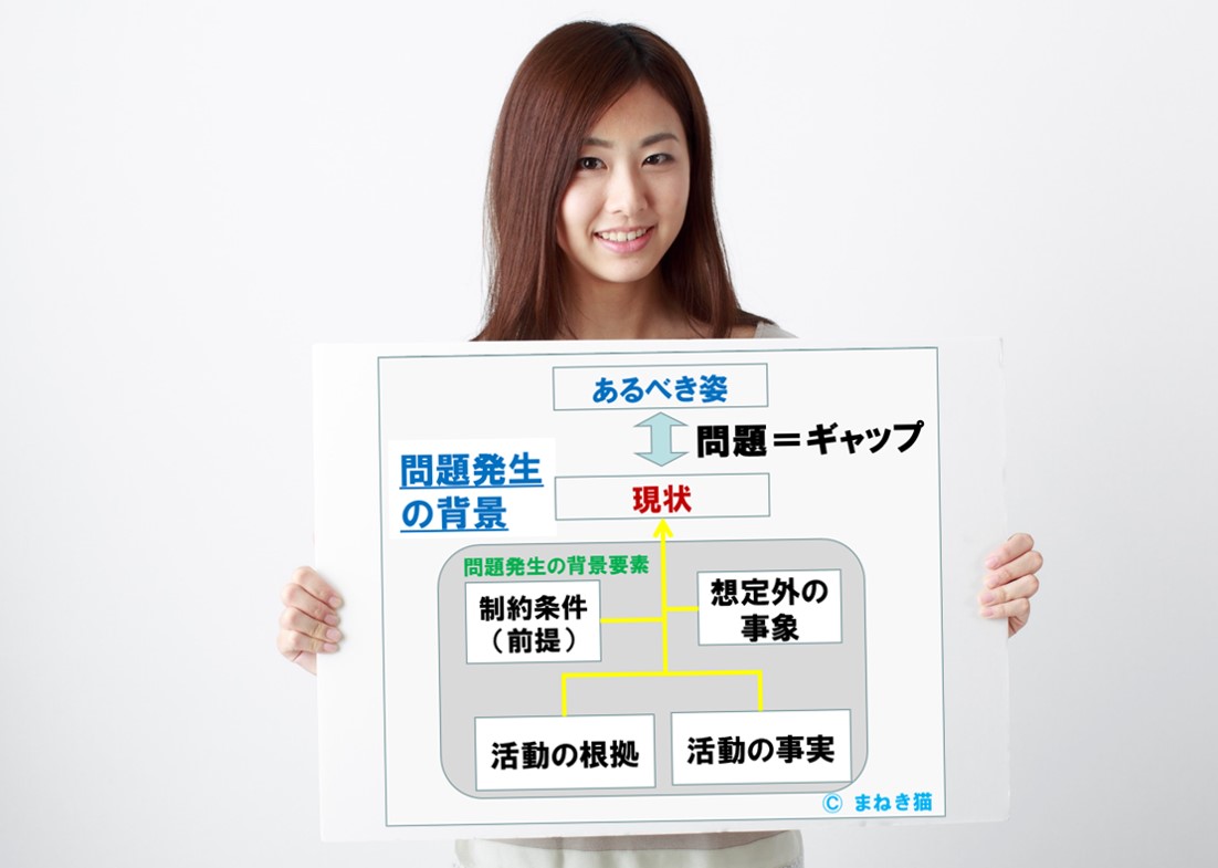 問題(ギャップ)は分かっても、これだけでは問題の解決には進めないことが多いのです。上手く進まないときは、問題が発生した原因を深掘りする必要かあり、問題発生の背景を探ることになります。